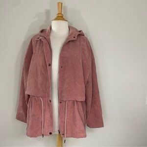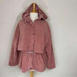 3/$25 Shein Curve Women's Blush Pink Corduroy Zip Hooded Jacket Size 1X Casual
