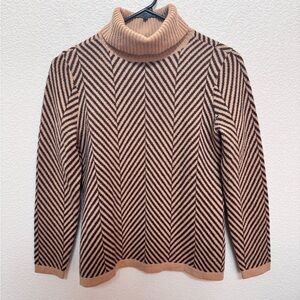 100% Cashmere turtleneck sweater by Lands End. This sweater is so cozy, could literally live in it. Classic black and camel colors. Note - tiny hole near the arm pit on the left side. See last picture. It isn’t noticeable and didn’t bother me, but if it bothers you it’s still a great layering piece!