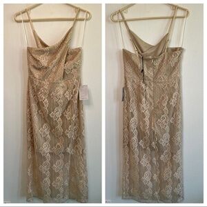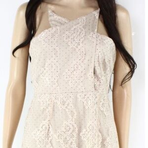 Absolutely gorgeous dress from NSR (originally purchased at Nordstrom), never worn and tags still attached. Floral lace with small black dots. It's a bit hard to see the front design, but basically the sides overlap/cross in front. It's SO cute in person!! Lined, back zip. Size M.