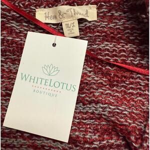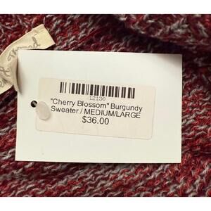 New with original tags $36. The size is M/L. This is a beautiful oversized burgundy and gray loosely woven sweater.