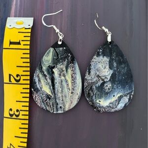 These handmade, acrylic dipped earrings are a unique abstract art piece that can be worn in casual or elegant settings. 3 sets available. Each set has a similar yet unique marbleized art style.