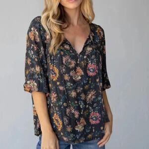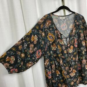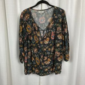 Natural Life Green Floral Maribel Popover Blouse Sz.XL