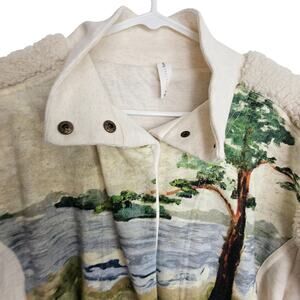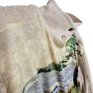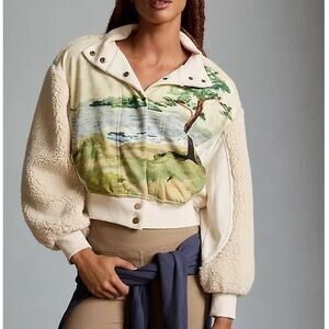 Anthropologie Daily Practice Faux Shearling Landscape Graphic Crop Jacket Sz XS