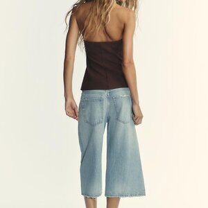 Fitted strapless top with a straight-cut neckline and bare shoulders. Bow detail on the front. Matching inner lining. Side zip fastening hidden in the seam.