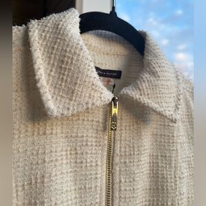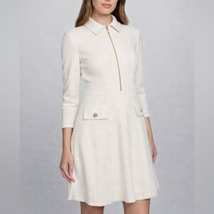 🆕 Tommy Hilfiger Cream Textured Tweed Zip Front Dress Size 2 Office Work Casual