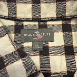 LL Bean Shirt Mens Large Beige Gray Plaid Signature Washed Oxford Slim Button