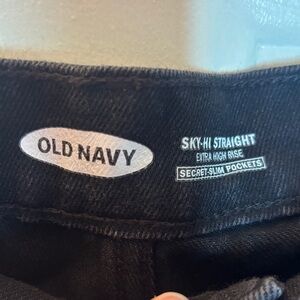Old Navy Black Distressed Sky High Straight Leg Jeans
