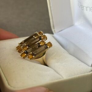 This stunning women's ring features a sophisticated blend of Smoky quartz and citrine gemstones!