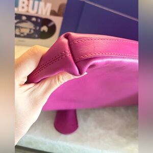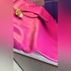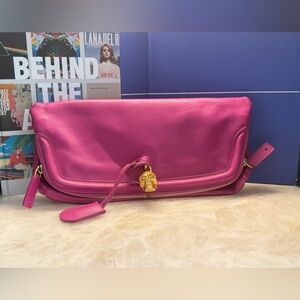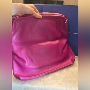 In excellent condition. Comes without dust bag. Scratches are present on the front. This stylish pink clutch is perfect for any occasion. Its vibrant color adds a pop of elegance to your outfit.