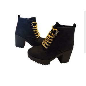 Seven7 Women's Black Platform Chunky Heel Boots Size 8 Lace-Up Casual Combat