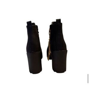 Keywords: Seven7, women's platform boots, black boots, chunky heel, lace-up boots, casual boots, high heel boots, round toe, synthetic upper, durable sole, medium width, new with tags.