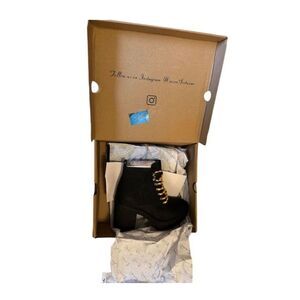 Elevate your casual style with the Seven7 Women's Platform Boots in classic black. These boots feature a chic lace-up design and a chunky platform heel, perfect for adding a touch of edge to any outfit. The durable sole ensures stability and comfort, making them ideal for a day out shopping or a casual night with friends. With a high heel height of 3-3.9 inches, these boots offer a fashionable lift while maintaining comfort. New with tags, these boots are ready to make a statement in your wardrobe.