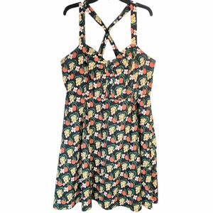 Modcloth Black & Orange fruit floral fit flare retro cotton midi dress 1X