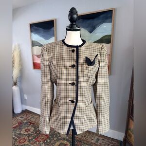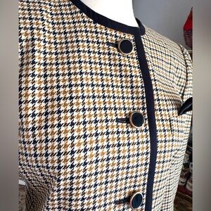 Sterling Cooper jacket, vintage blazer, houndstooth coat, peplum jacket, retro fashion, women’s size 6, tailored blazer, puff shoulder jacket, London New York brand, vintage style, chic outerwear, classic plaid jacket, pre-loved vintage, timeless fashion, fit and flare blazer, elegant workwear, statement jacket