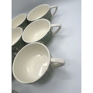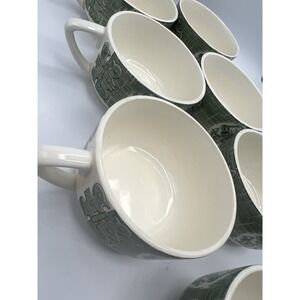 SET of Old Curiosity Shop Underglaze Green Coffee Mug 7 Mugs Scroll Candle Pen
