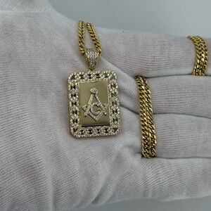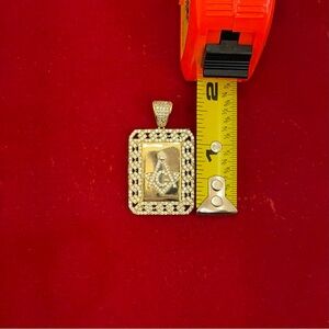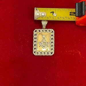 Masonic Square & Compass Pendant 18K Gold Dipped Silver Iced CZ Approx 12g