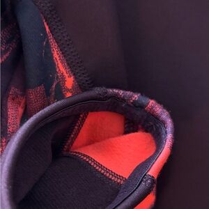 Dynamic long sleeve top with bold red patterns. Perfect for workouts and casual wear. Comfortable and stylish design.
