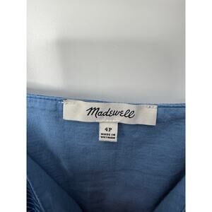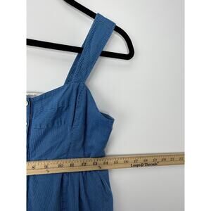 Madewell Tiered Button Front Midi Dress Blue Stripe Cotton 4P Petite Cottage