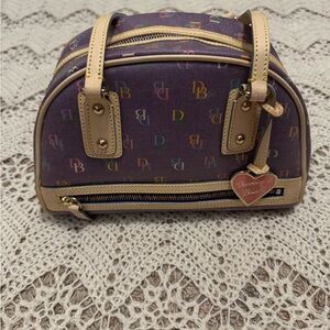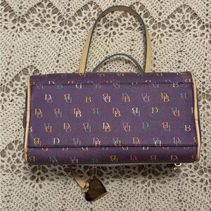 Vintage Dooney & Bourke Purple Tan Rainbow Logo Mini Gym Shoulder Bag Set Y2K