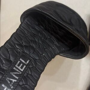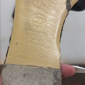 These are pre-worn Chanel flats. They still have a lot of life left in them super comfortable, genuine, leather black on black cc flat sandals size 38 1/2 which would be a 8 1/2 or 8 100% authentic NO LOW BALL OFFERS PLS