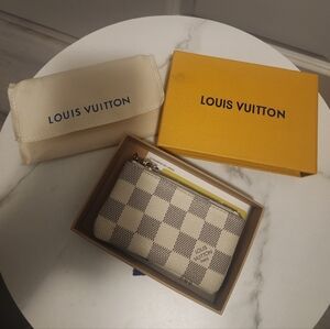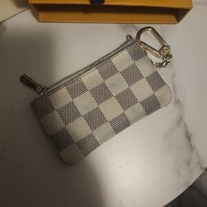 Elegant key pouch with iconic checkered design. Includes box and dust bag. Discoloration on back side of the wallet. Willing to negotiate.