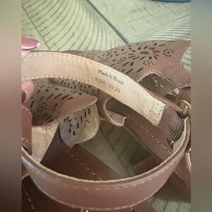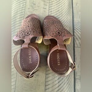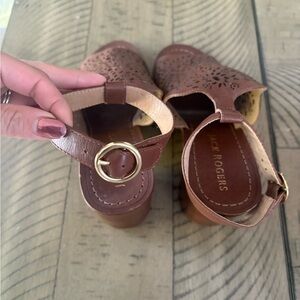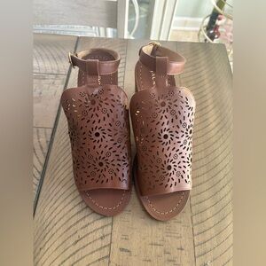 NEW Jack Rogers Womens Brown Laser Cut Ronnie Block Heel Leather Sandals 9.5M
