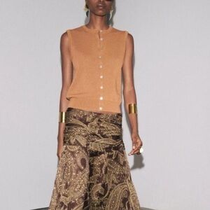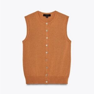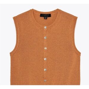 Zara NWT tan rust orange button front knit vest cardigan