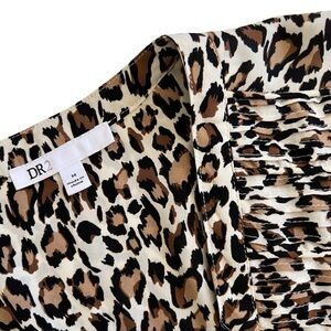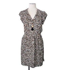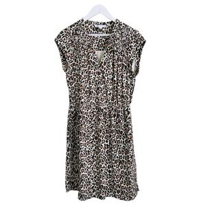 DR2 Leopard Dress Shirred Detail Elastic Waistband Pockets Brown Cream Sz M
