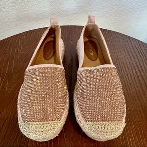 Step out in style with these sparkling pink espadrille flats. Perfect for adding a touch of glamour to any outfit.