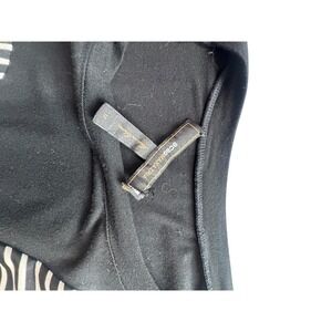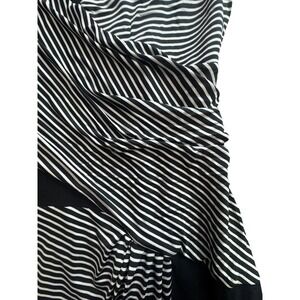 BCBGMAXAZRIA Dress Womens Medium Black White Stripe Ruched Sheath Short Sleeve