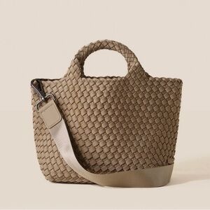 Discover the perfect blend of style and functionality with this elegant tan woven tote bag. Ideal for any occasion, this bag offers a spacious interior and a chic design. In EUC