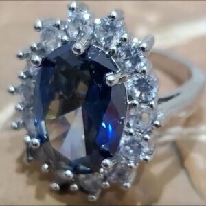 White Gold Overlay 5.75CTW Mystic Topaz & White Sapphire Ring