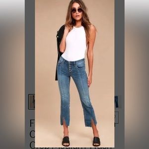 Free People 5 Button Closure Split Front Crop Medium Denim Jeans Womens 28”