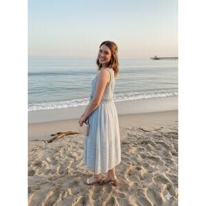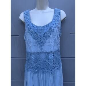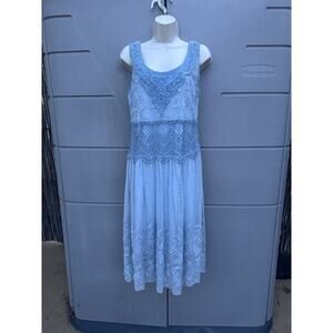 SUNDANCE Love Always Blue Lace Overlay Midi Dress Sz 6 Beach Coastal Romantic