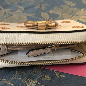 NEW cute Kate Spade New York Wrapping Party Small Zip Cardcase in Parchment/Gold
