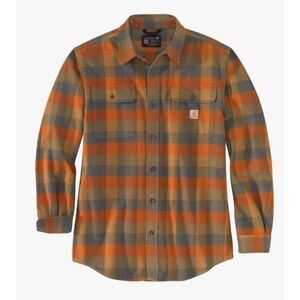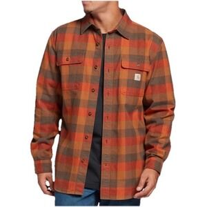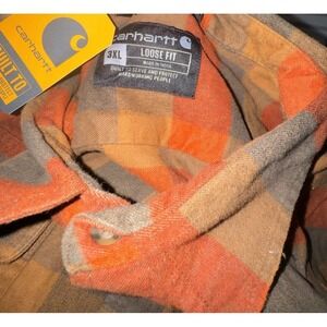 Carhartt Men Heavy Flannel Plaid Shirt Loose Fit Brown Size 3XL NWT