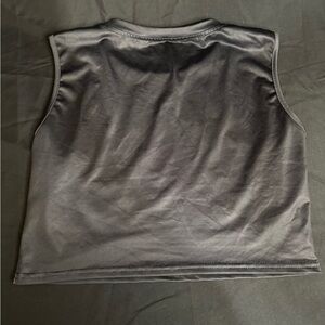 Stylish black crop top featuring a vibrant graphic design. Perfect for adding a bold touch to your wardrobe.