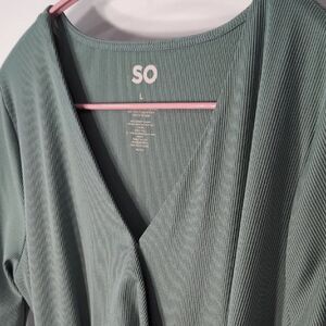 SO | Minimalist Teal Ribbed Long Sleeve Mini A-line Ruffle Dress Size L