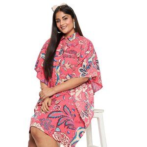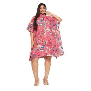 Gypsie Blu Floral Printed Short Caftan Dress Plus Size Button Down Cotton Tunic