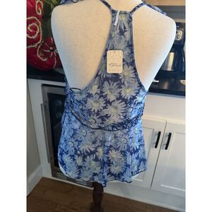 Free People Top Womens Small Blue Floral Boho Sleeveless Ruffle Tiered Summer