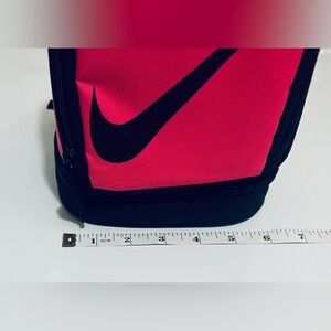Stylish pink and black insulated dome lunch tote with iconic Nike logo. Perfect for daily use. Flat top handle with 2” drop. Bottom zipper with separate compartment and front zipper to open the main compartment. NWOT never been used, bought for my daughter at beginning of this school year and she ended up not needing it.