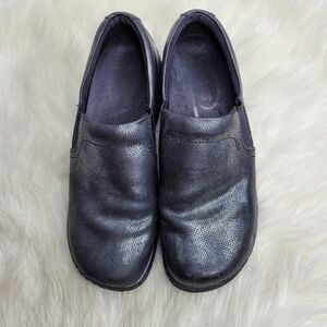 Black shoe and sole. Upper Leather has scuffs but still plenty of life! Shoes have Mermaid like color although it's a bit faded. Pretty in the light.