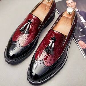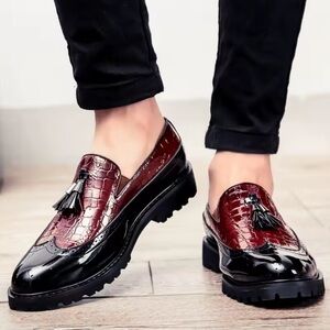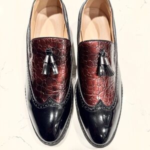 Cabuncci Men’s Vintage Brown Black Oxford Slip On Loafers Tassels Size 12 NWOT