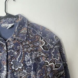 Vintage Velvet Paisley Jacket Womens Size L Blue Boho Western Art Teacher Top