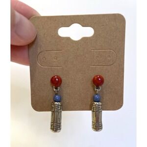 Funky dangle earrings with red, blue, and silver beads. Boho, everyday, timeless.