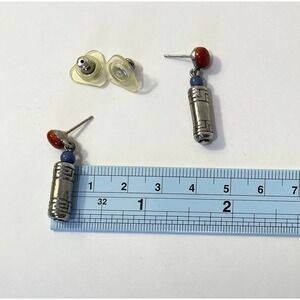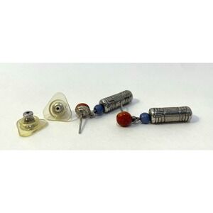 Vintage Beaded Silver Tone Stud Earrings Dangle Engraved Barrel Artsy Unique