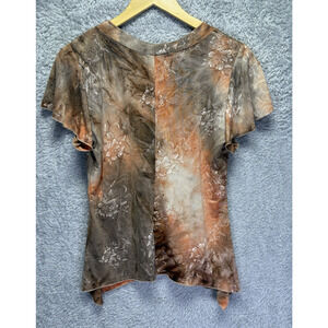 VTG Dressbarn Petit Large Top Orange Brown Floral Y2k Sparkle Boho Fairy Stretch