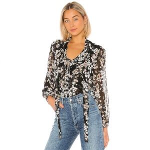 NWT MISA Patia Black Floral Sheer Long Sleeve Tie Neck Ruffle Detail Blouse Size Small.