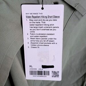 NEW Lululemon Water-Repellent Hiking Short Sleeve Snap Up Shirt LM3DX6S Men's XL