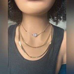 Enhance your style with this elegant gold layered necklace set. Perfect for any occasion, this set adds a touch of sophistication to your look.
